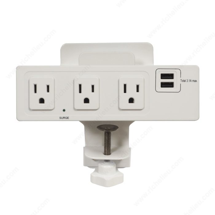 Clamp-On Power Bar and USB Charging Station – White